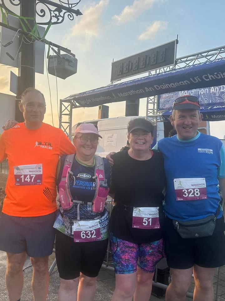 Angela and Veronica manning the bag drop, while John, Betty and Giles are ready to take on the challenge of Dublin Marathon